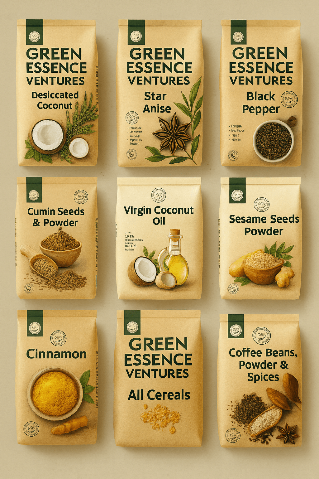 At Green Essence Ventures, we strive to present the richness of India's heritage to the world by exporting top-tier spices, handicrafts, organic agricultural products, coir products, and more. Our dedication to nurturing long-term relationships and delivering exceptional quality enables us to connect with customers across the globe.